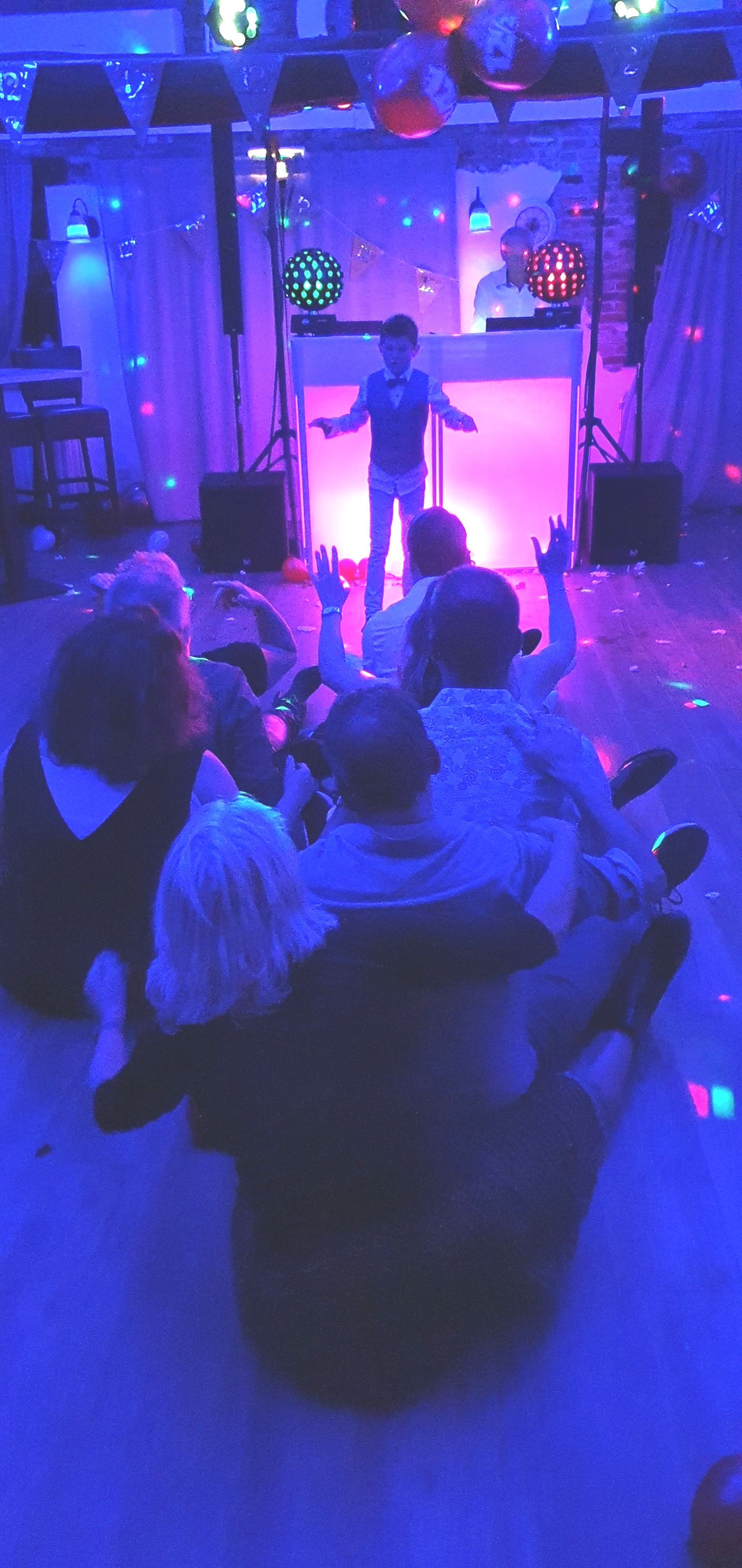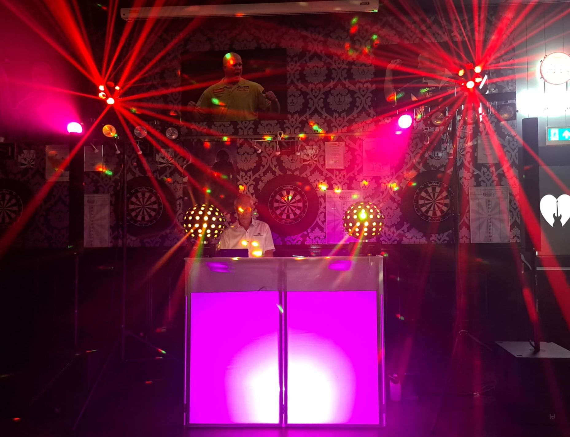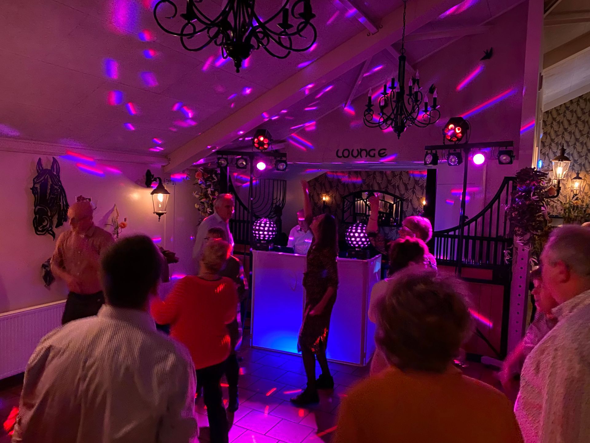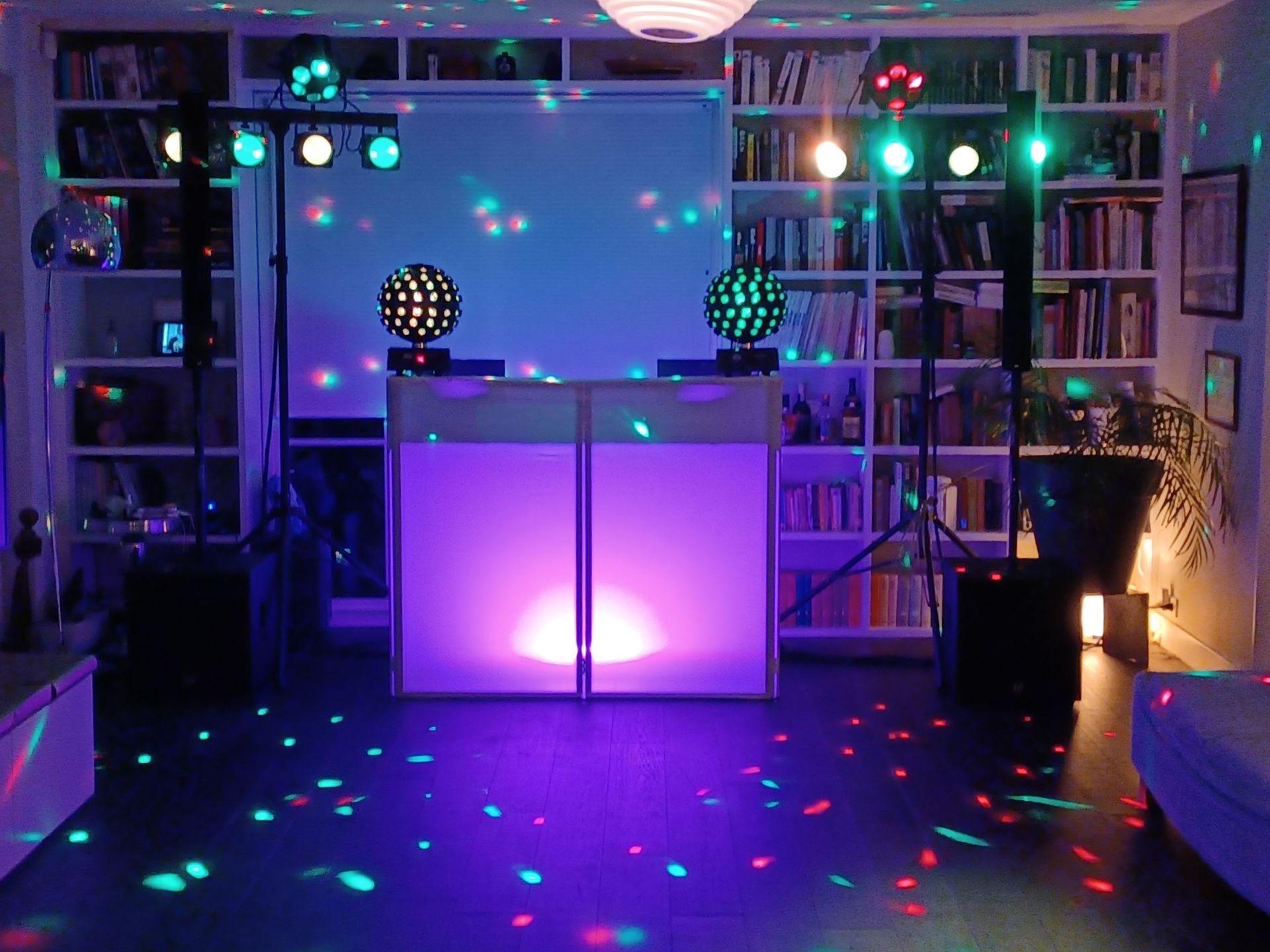 - Een show met professioneel DJ-meubel en verlichte dansvloer